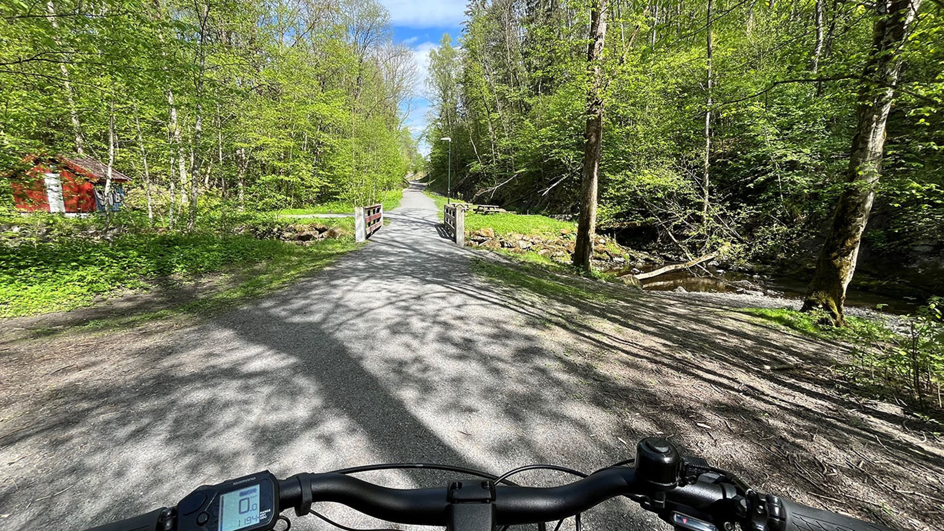 Sykle langs Elvepromenaden mot Løkketangen, herfra tar du opp Leif Larsens vei og inn i Skytterdalen. Fortsett langs Solbergbekken mot Løkeberg, og følg så nordsiden av Bærumsveien til du kan ta inn på