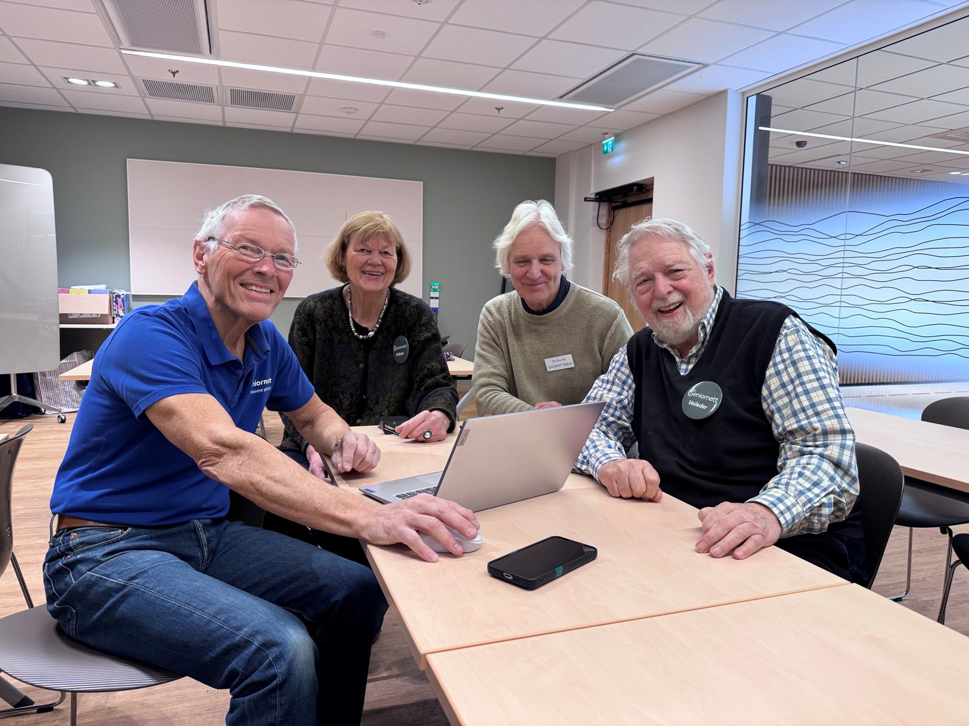 Selv har hun vært veileder siden hun gikk av med pensjon for 12 år siden. – Det gir mye å hjelpe andre med å bruke mobil og nettbrett for å mestre hverdagen, forteller hun. Ketil Taxt, som er ansvarlig for veiledningen i Kommunegården på onsdager, stemmer i: – Å være veileder for Bærum seniornett er en fin måte å hjelpe andre på. Det bidrar også til egenutvikling, i tillegg til at det er sosialt, sier Ketil. – Ja, det er vinn-vinn, supplerer styreleder Siri. – Som veileder holder man seg faglig oppdatert selv også.