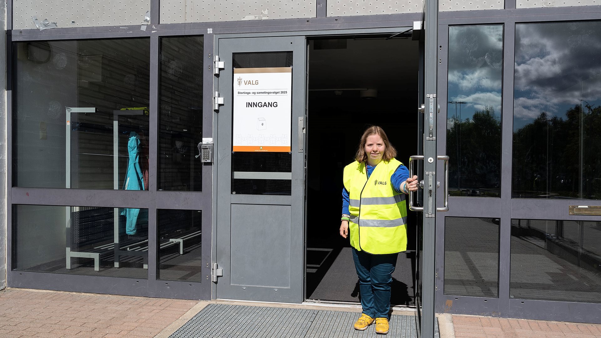 Ved å åpne dørene er valgvertene med på å gjøre valglokalene i Bærum tilrettelagte slik at alle velgere kan ta seg inn og ut uten hjelp, slik valgloven krever. Valglokalene der vertene skal være har ikke automatiske døråpnere, men denne løsningen sikrer likevel universell tilgjengelighet.