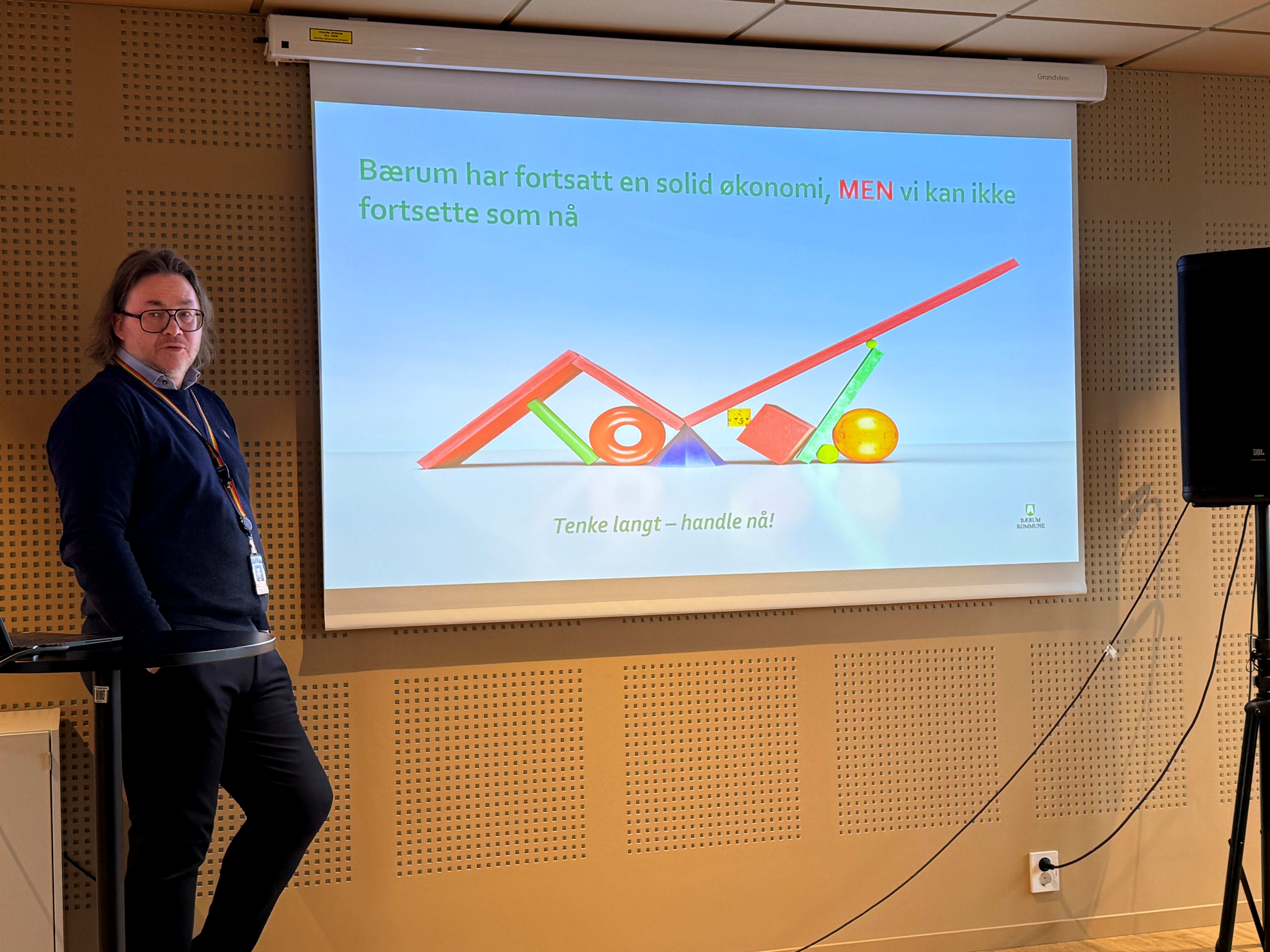 - Vi må kutte en milliard kroner. Derfor må vi tenke nytt, jobbe på nye måter og finne nye løsninger. Dagens drift og investeringsaktivitet er ikke bærekraftig, sa Wollum. I takt med at inntektene i Bærum har gått ned, har gjelden gått opp. Vi må ta grep i dag for å planlegge for fremtidens Bærum. Klima er en av de viktigste «driverne», det vil si faktorene som påvirker samfunnsutviklingen både positivt og negativt, i kommunens økonomiarbeid.