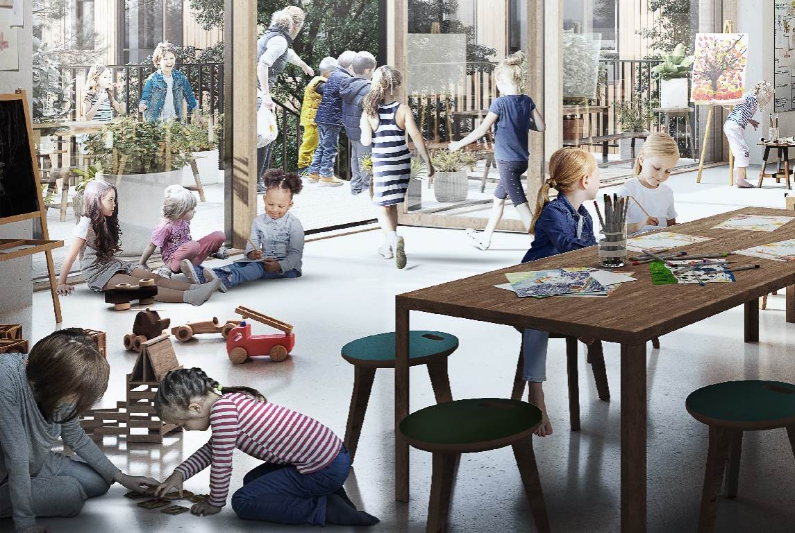 Bærum kommune bygger Oksenøya senter, det første prosjektet der kommunen samlokaliserer skole, barnehage og sykehjem.