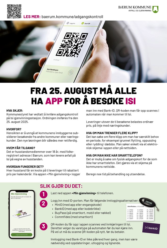 Før besøket til Isi må alle laste ned appen «Min gjenvinning» til telefonen sin. Der må man registrere seg via ID-porten.